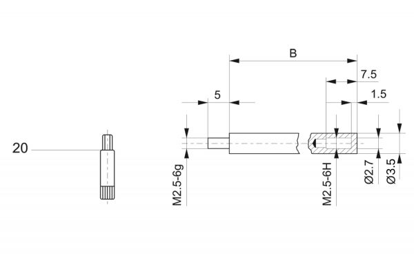 2302-1716  Verlängerung Messuhreneinsatz M2.5 • Länge = 20 mm  ... mehr